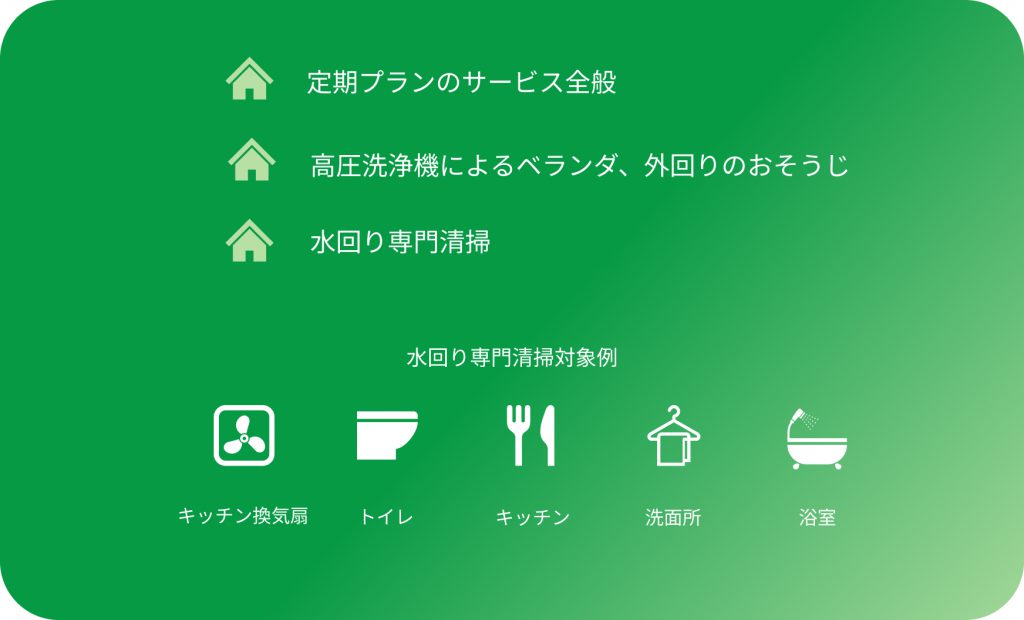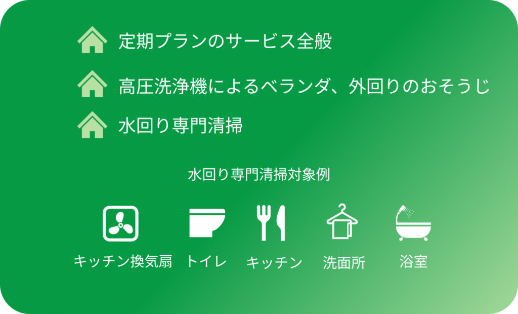 ときどきプランでは、おそうじのご要望により専門の洗剤、道具をご用意いたします。